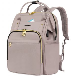 VANKEAN 15.6 Inch Laptop Backpack for Women Work Bag Fashion with USB Port, Waterproof Stylish Travel Bags Casual Daypacks for College, Business, Light Dusty Pink