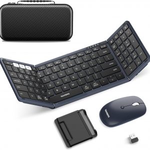 Foldable Keyboard and Mouse, Samsers Folding Bluetooth Keyboard Combo, 2.4G + BT5.0 x 2, Full-Size Portable Travel Keyboard & Rechargeable Wireless Mouse for Windows Android iOS Mac OS, Midnight