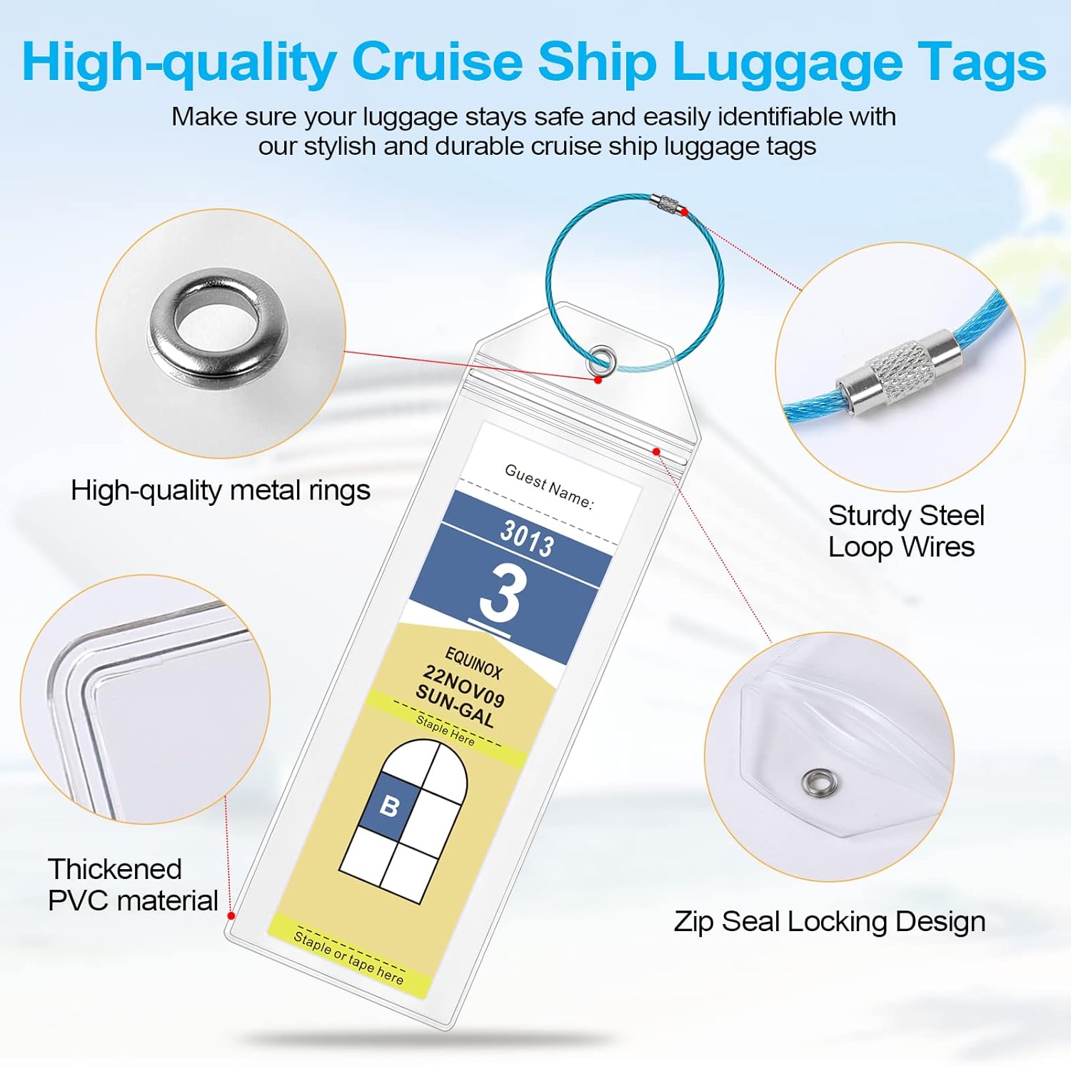 - Easy to Use: Pass the metal cords through the cruise luggage tag holes and secure them to the luggage. Make sure your luggage is delivered safely and on time to your cabin