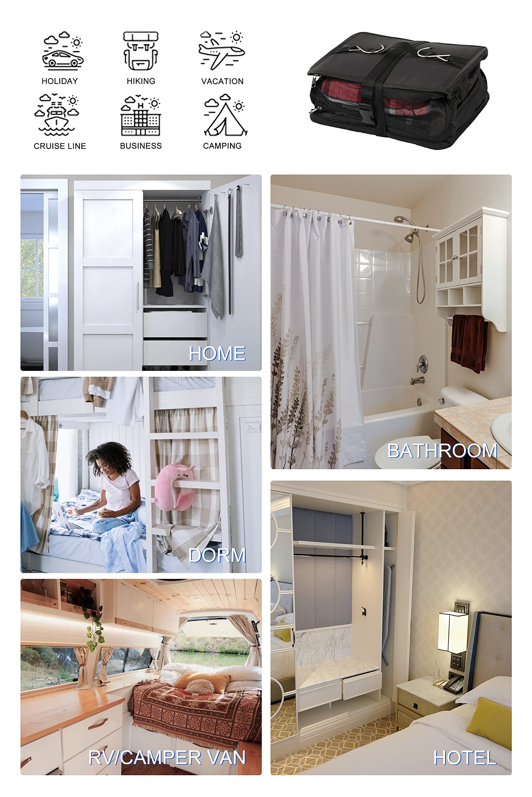 - [Multiple Applications] – This hanging shelf can be an all-purpose organizing tool, it can not only fit the suitcase but could also be effectively used at home/ dorm/ hotel/ hospital and van/camper to enhance your closet organization, providing the ultimate convenience for your business trips or vacation.