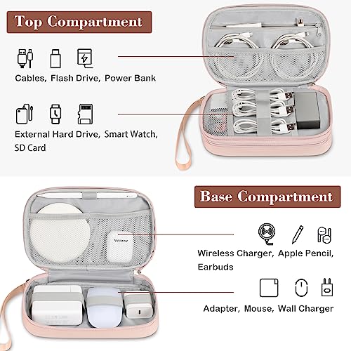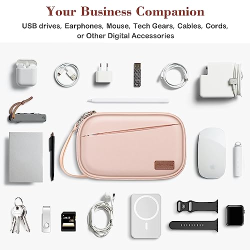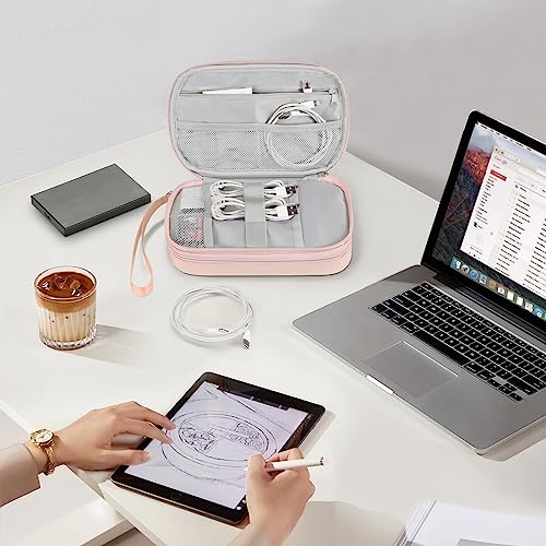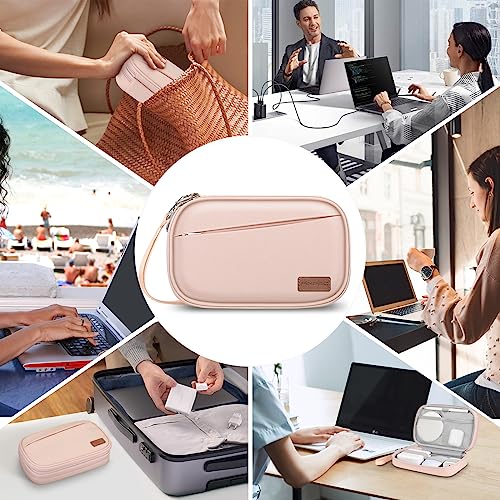 FINPAC Travel Electronic Bag, Portable Cable Organizer Electronic Essentials Pouch Case, Double Layer Storage Bag for Cord, Hard Drive, Charger, Wireless Earbuds, USB, SD Card (Pink)