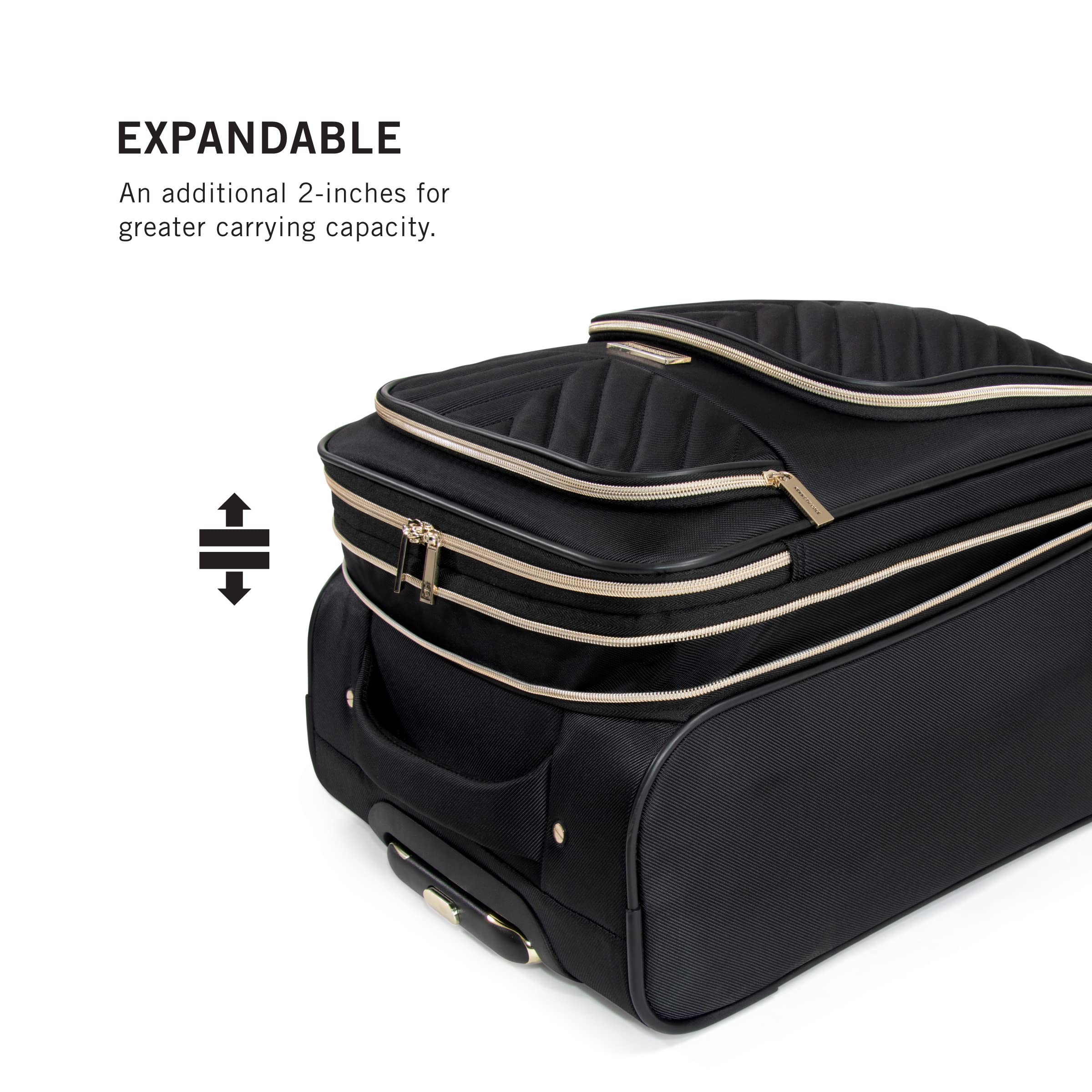 - Suitcase expands an additional 2. 0 inches for additional space when needed.