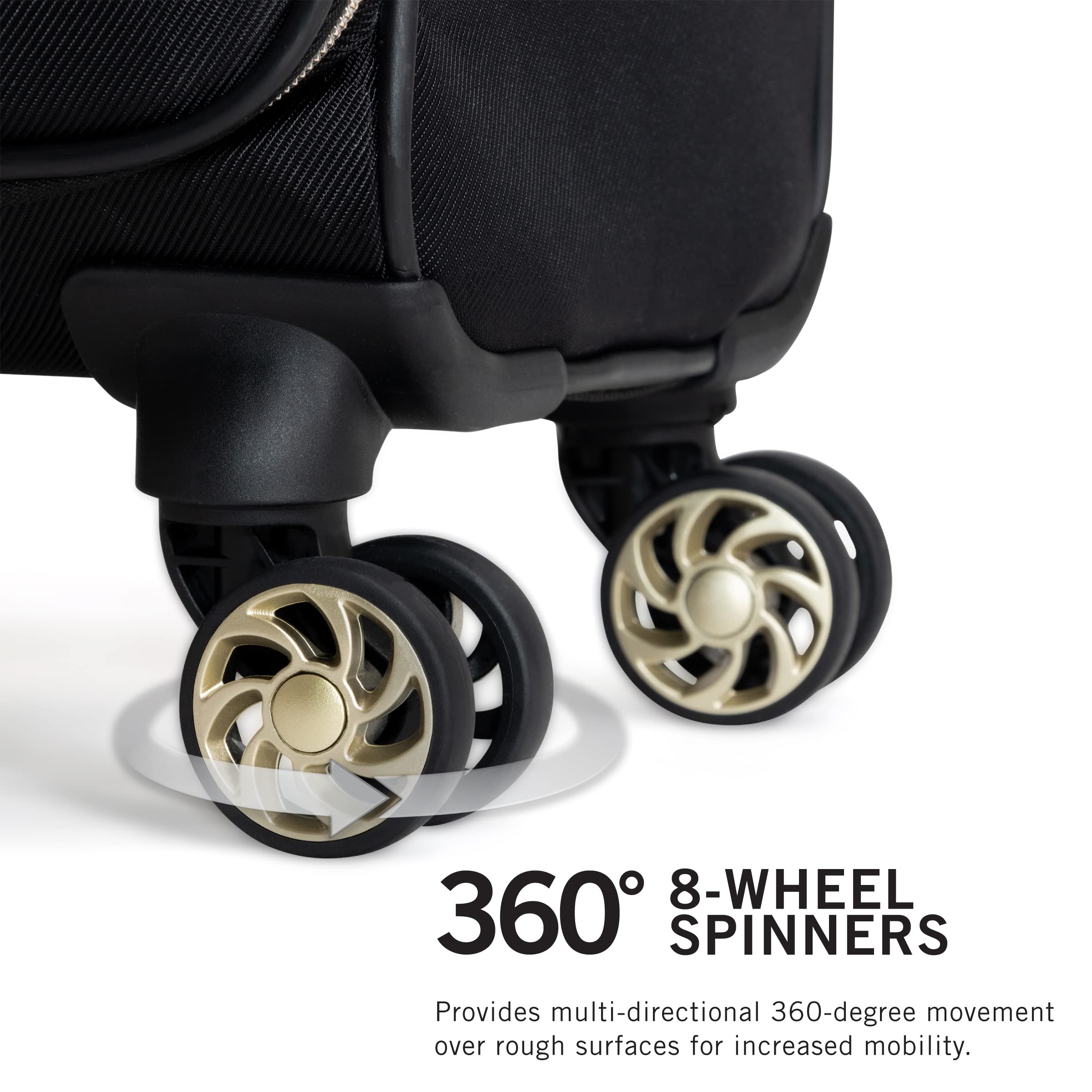 - Fitted with premium 8-wheel multi-directional spinners that allow for effortless free-weight maneuvering.