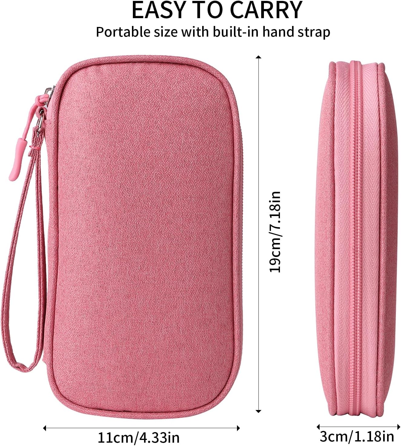 Pink Universal Cable Organizer – Electronics Accessories Bag for Charger, Phone, Memory Card & Travel Gadgets