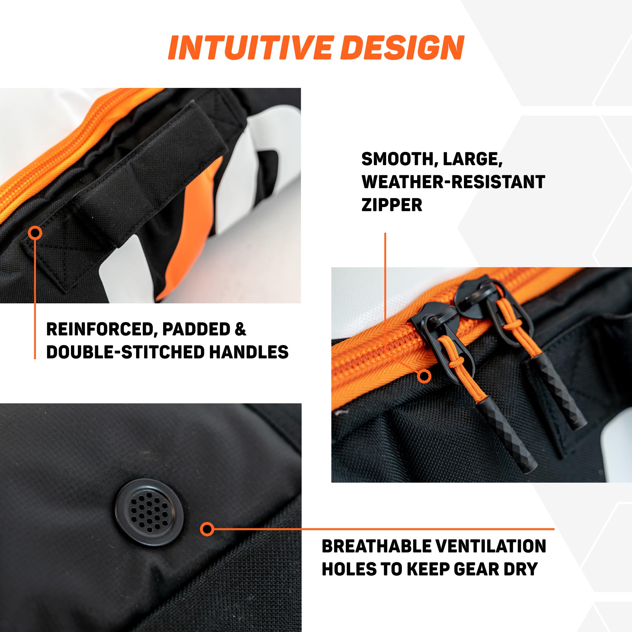 • Material: 600D Polyester top and side is rugged, strong and stable. Tarpaulin base to handle most conditions. Padded handles with double stitching allow you to pull and drag the bag with ease & confidence. Smooth inner lining to protect the surface of gear. Hand-selected materials and deliberate design is made to last multiple seasons.