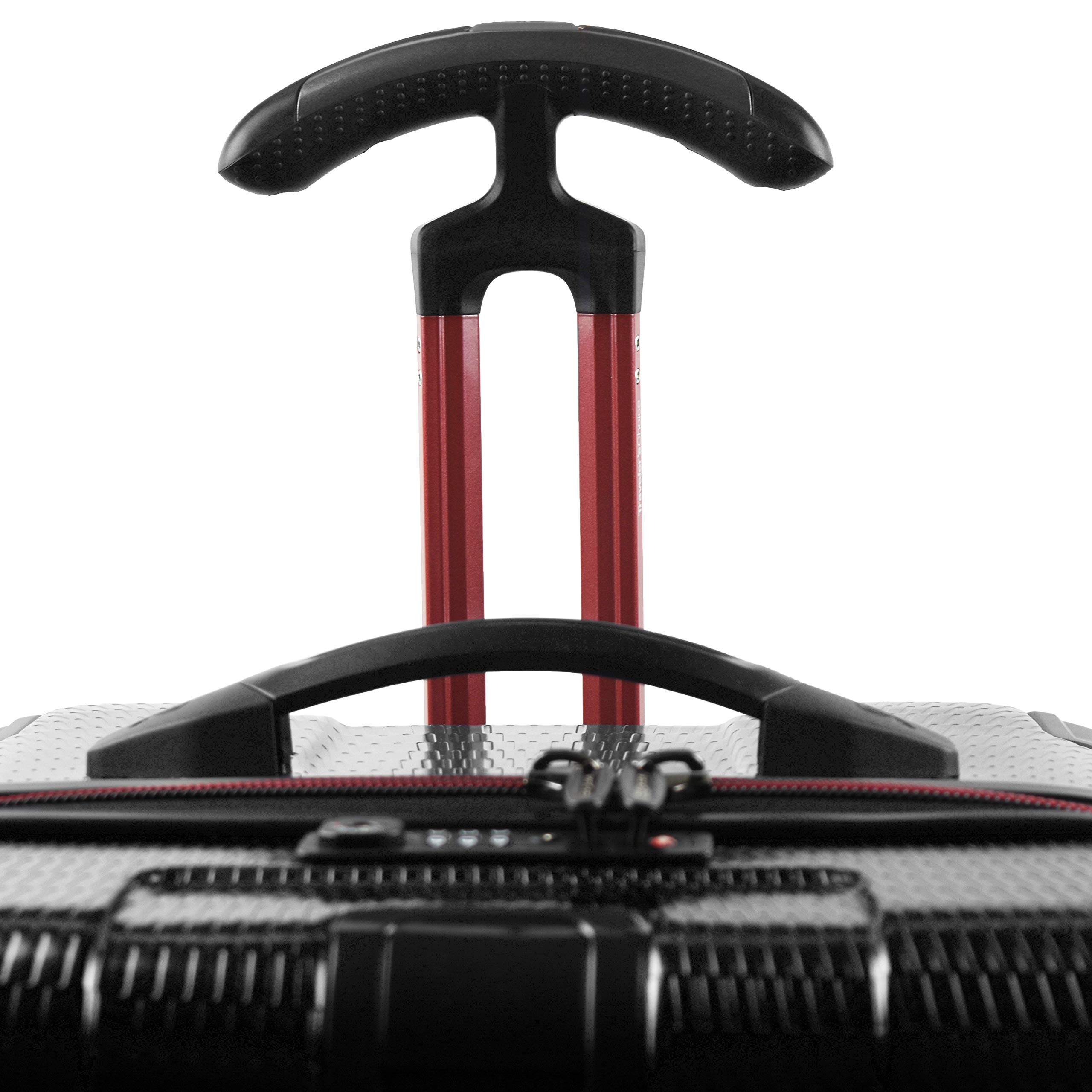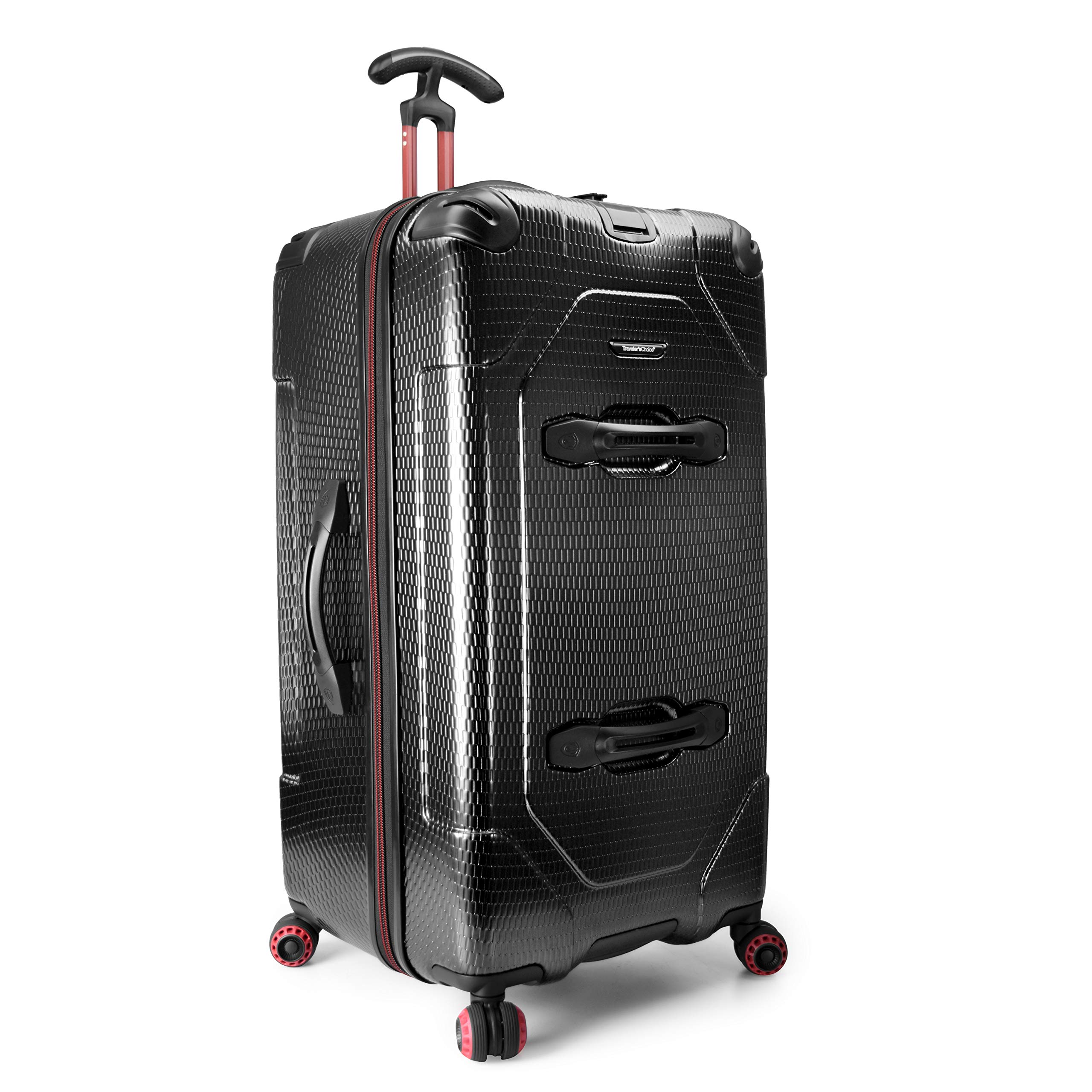 Details: Made of 100% polycarbonate materials with unique texture that helps prevent abrasive scratches. Protective corner guards ensure maximum protection against rigors of travel. Patent-pending T-Cruiser handle system allows you to maneuver your bag with ease. The downward curve of the T-Cruiser handle system fits the natural position of your hand, thereby minimizing discomfort of fatigue. Patented Dual Cyclone Spherical spinner wheel system provides wide wheel bases for better traction and stability. The four multi-directional Dual Cyclone wheels allow the suitcase to roll upright, so there’s no weight on your arm or shoulder. Built-in TSA compliant lock secures your belongings. Main compartment features a 70/30 split opening for maximum packing. Custom Adjustable shelves allows precision packing. Top, front, side and bottom grab handles for easy lifting. Imprinted fully-lined interior with zippered center divider. Internal zippered pockets and zippered divider provide easy organization. Detachable clear zippered utility pouch is great for your personal items. Add-A-Bag Strap allows you to easily hold an extra bag. Exterior dimensions: 31”H x 17”W x 14”D (12.52 lbs.) Interior dimensions: 29”H x 16”W x 13.5”D