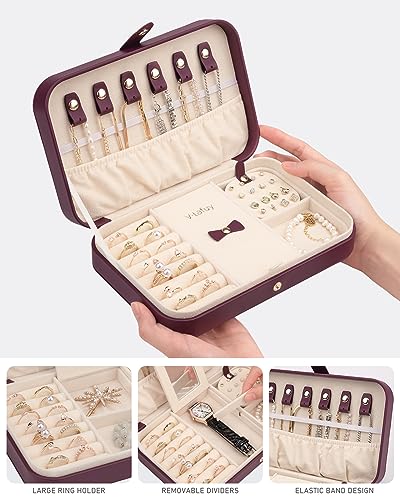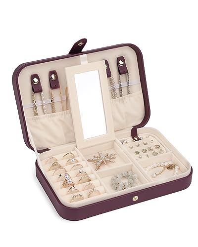 - [TRAVEL JEWELRY CASE] – Design for journeys, travel, weekend trip, or business trip. The small jewelry organizer is lightweight and portable: 8.35″ x 5.4″ x 1.78″. It is easy to carry in your handbag or luggage and keeps all your jewelry well organized.