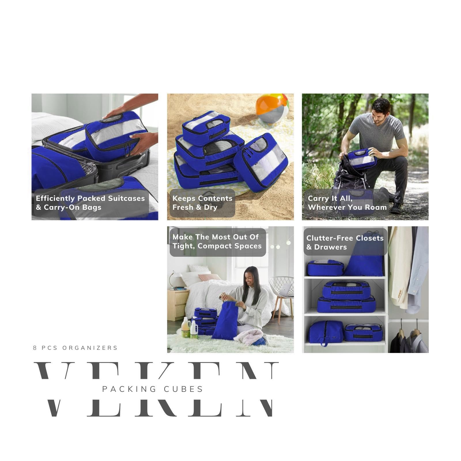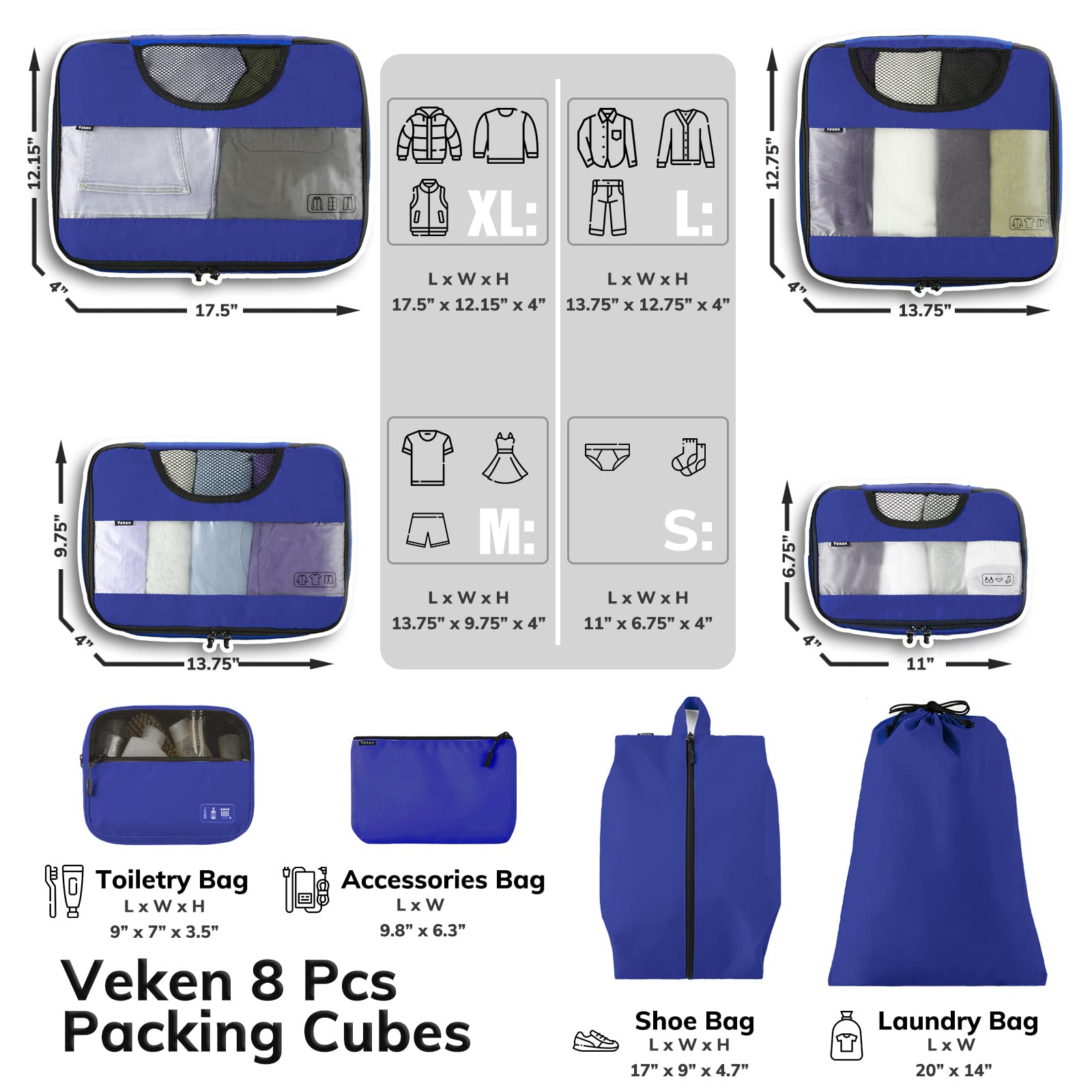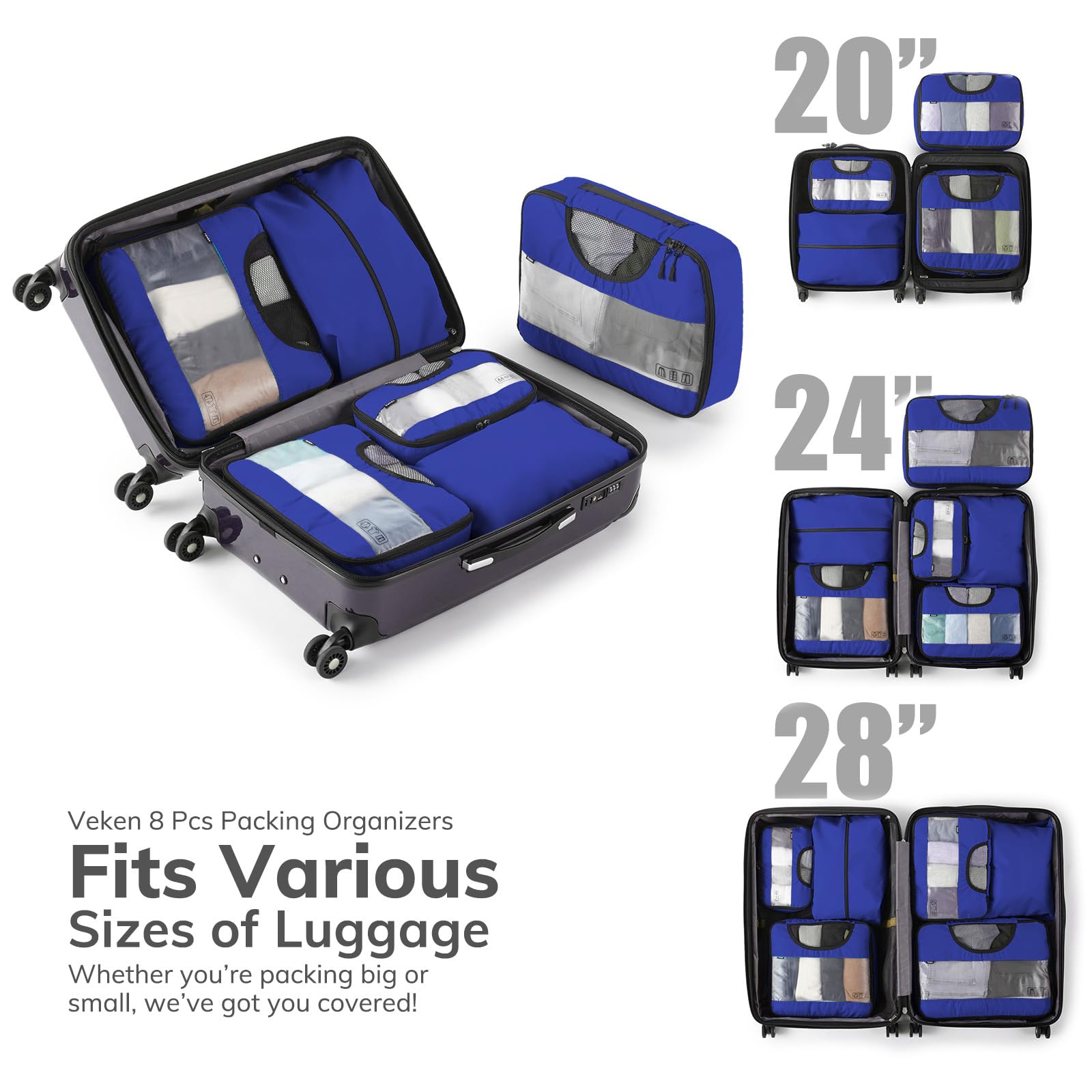 Veken 8 Set Packing Cubes for Suitcases, Travel Bag Organizers for Carry on Luggage, Suitcase Organizer Bags Set for Travel Essentials Travel Accessories in 4 Sizes(Extra Large, Large, Medium, Small)