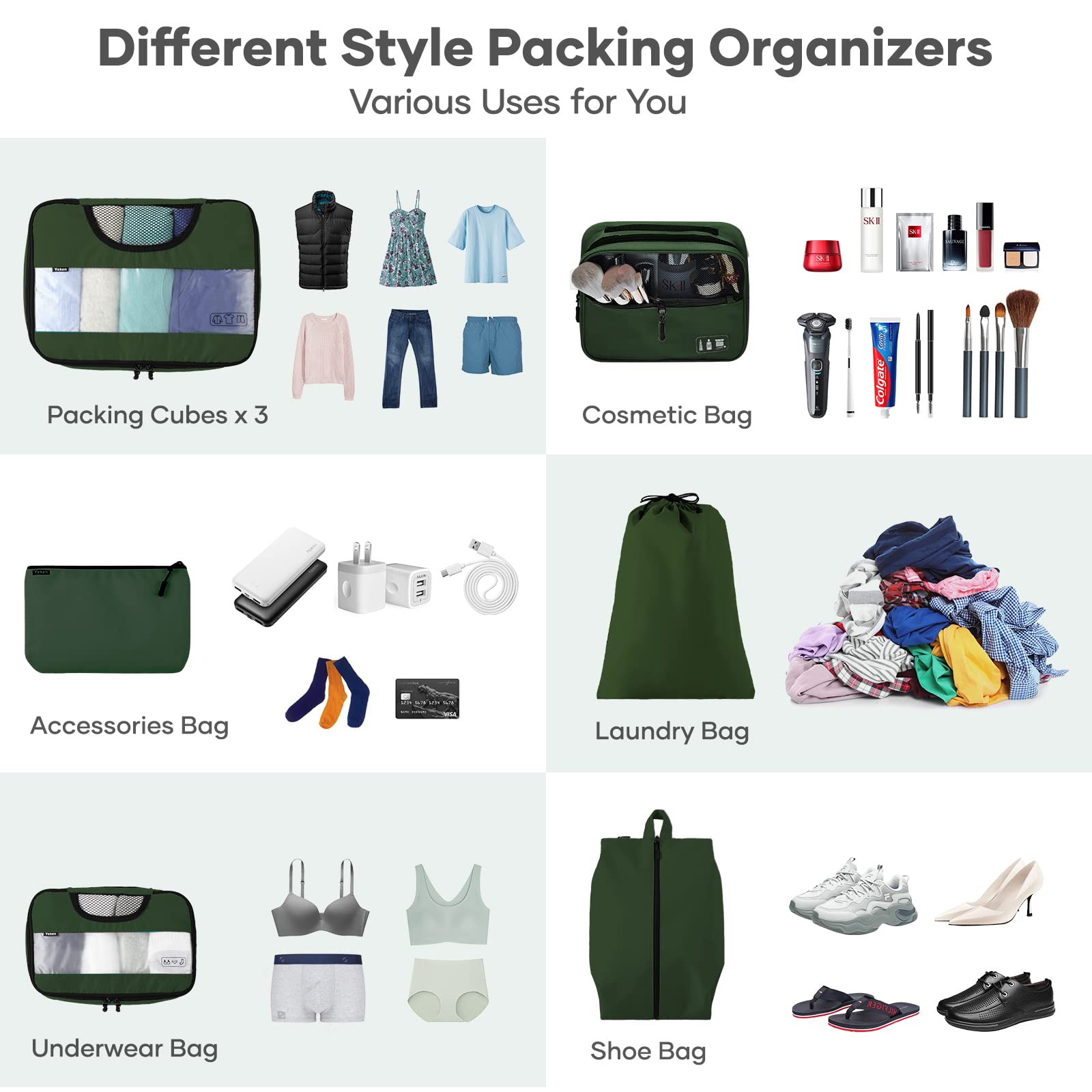 - Versatile Travel Organizer Bag: Whether you are carrying an airline carry-on suitcase, duffle bag, backpack, or tote, these packing bags are sure to fit compactly without taking up a lot of space. You can take these travel cubes for packing on business trips, camping adventures, cruise ship, and vacations, to keep your clothes, toiletries, and other accessories separated, or also use them at home as storage organizers for your cabinets to keep your closet spick-and-span.