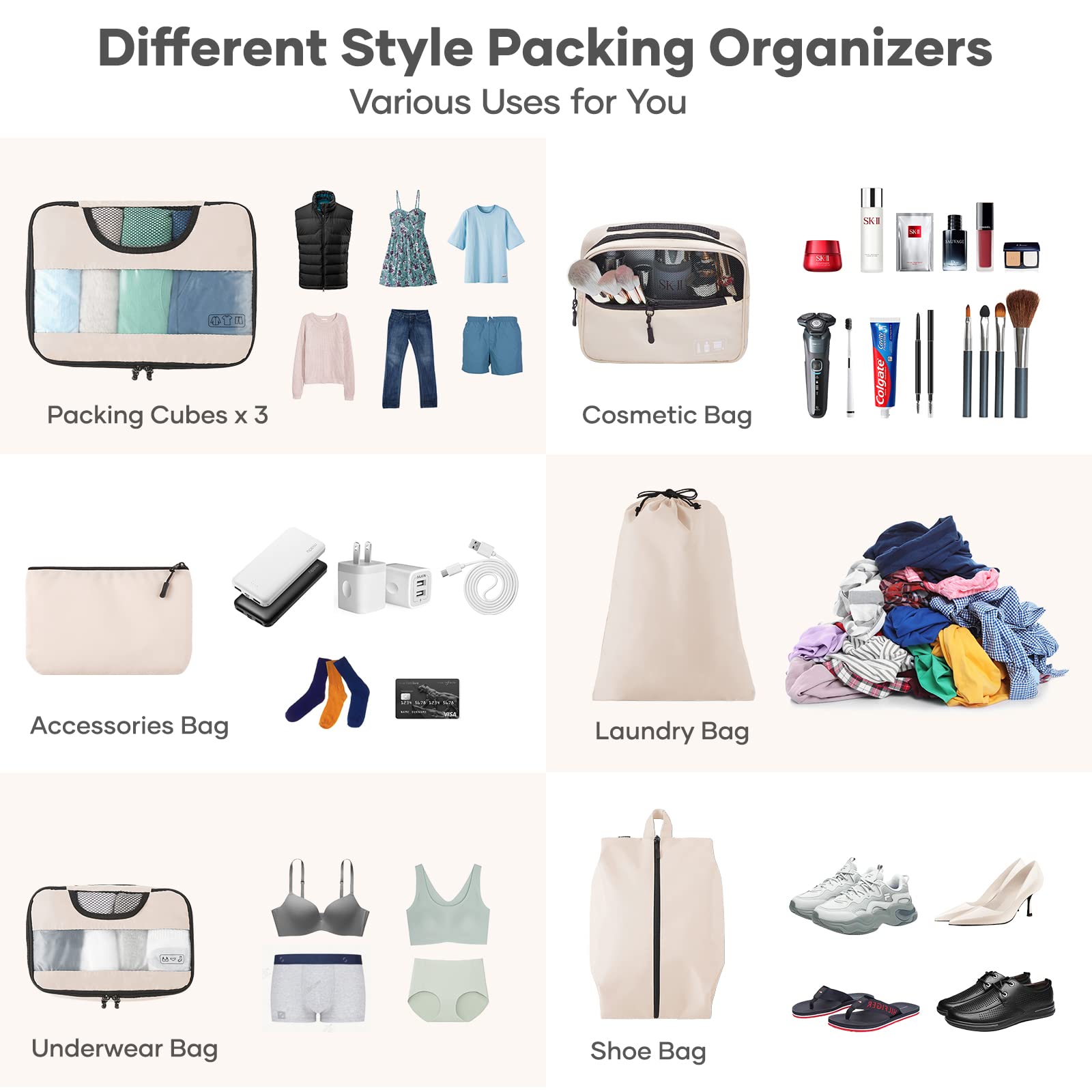 - Versatile Travel Organizer Bag: Whether you are carrying an airline carry-on suitcase, duffle bag, backpack, or tote, these packing bags are sure to fit compactly without taking up a lot of space. You can take these travel cubes for packing on business trips, camping adventures, cruise ship, and vacations, to keep your clothes, toiletries, and other accessories separated, or also use them at home as storage organizers for your cabinets to keep your closet spick-and-span.