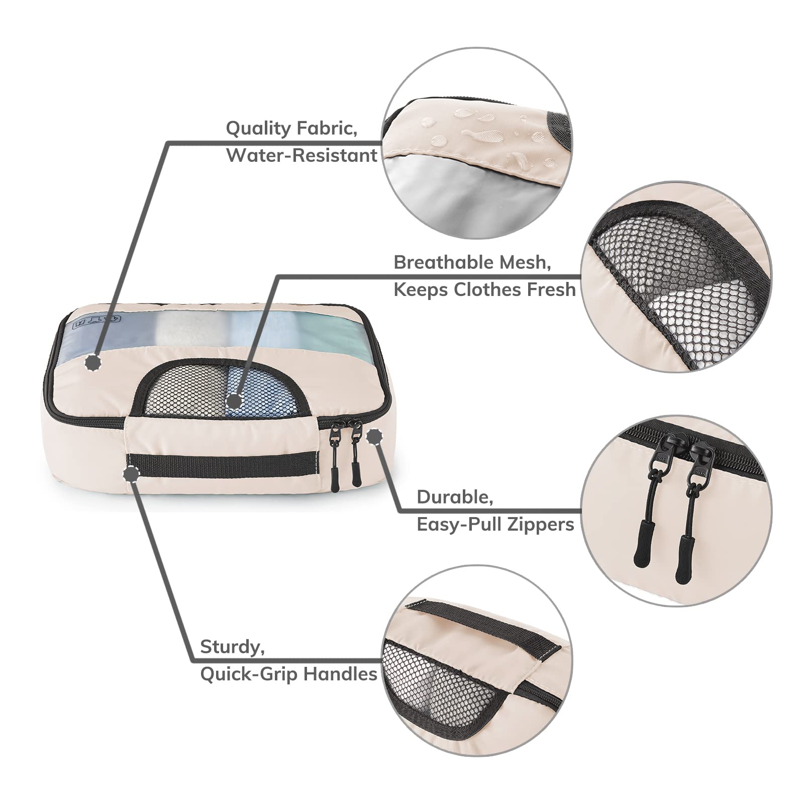 - The Right Materials: Our packing cubes boast a 26% superior thickness. After comprehensive analysis of other luggage organizers, we found their 230D Polyester or various polyester fabrics lacking. In contrast, we’ve chosen to create our travel bags with 290D Polyester – a fabric significantly more robust and resilient, promising the longevity and durability you need for everyday use.