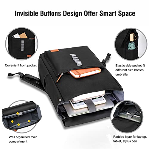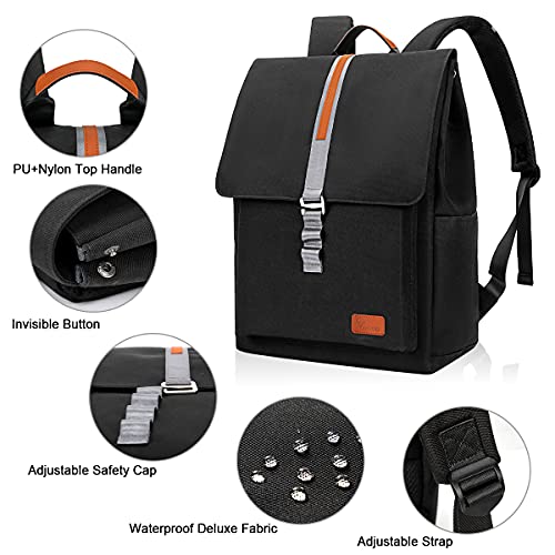 Voova Work Backpack for Adult Men Women, Vintage Laptop Backpack Computer Bag with 15.6 Inch Laptop Compartment, Fashion Casual Daypack Bookbag for Travel and College, Black