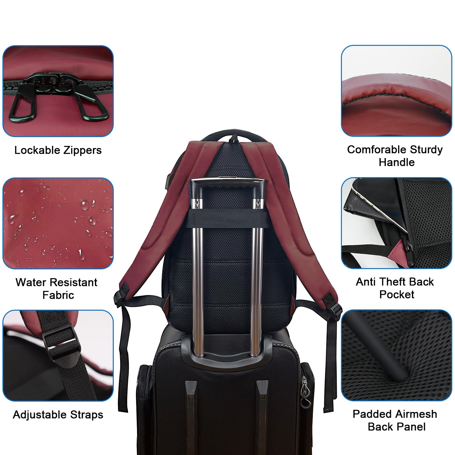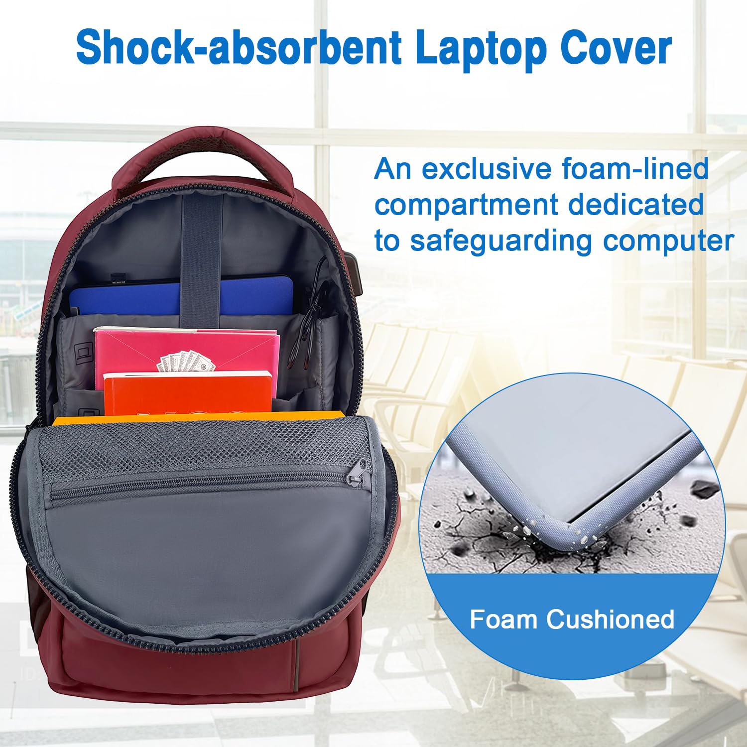 - [FUNCTIONAL & MULTIPURPOSE]: Designed as a carry-on backpack for air travel, Built-in anti-shock straps secure laptop, prevents them from sliding and bumping. There is a luggage strap on the back, which allows you to put your travel backpack on the suitcase and free your hands. Large Laptop Backpack Purse for business, college, holiday, travel, to make your travelling more convenient.