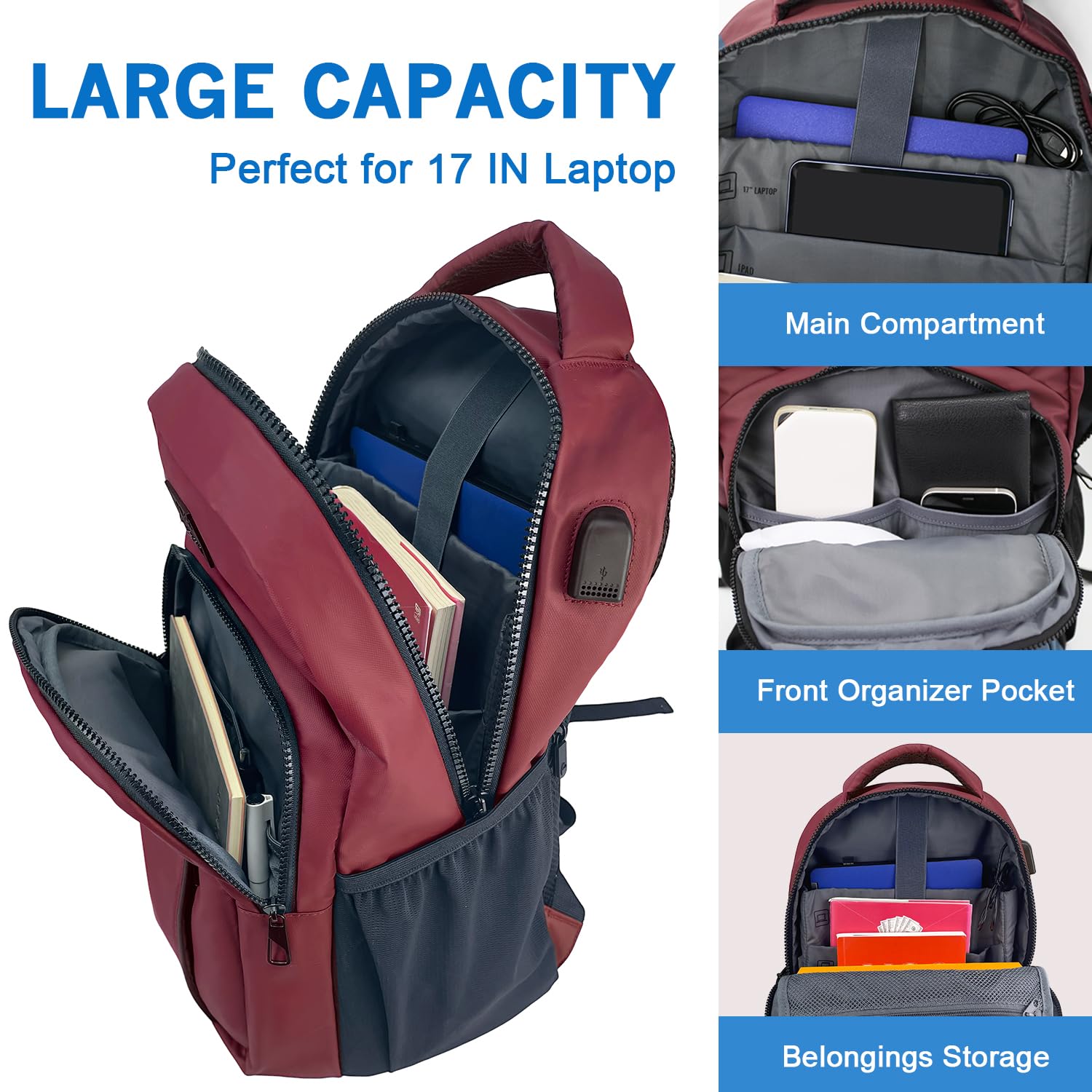 - [LARGE CAPACITY & ORGANIZATION]: Stay organized with this casual daypack featuring multiple compartments and a separate laptop compartment for easy access to all your essentials. Ideal for carrying daily essentials, iPad and laptops up to 17 inches with extra protection.